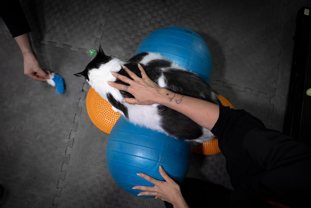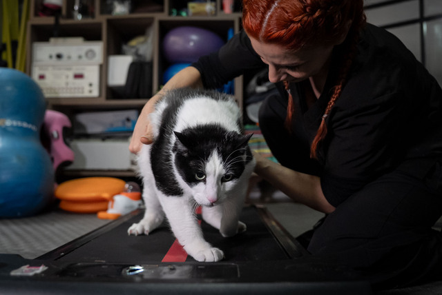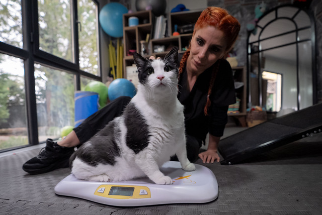 Sahibinin, veteriner fizik tedavi ve rehabilitasyon merkezine götürdüğü 8 yaşındaki kedi için veteriner hekimlerce özel bir beslenme ve egzersiz programı hazırlandı.