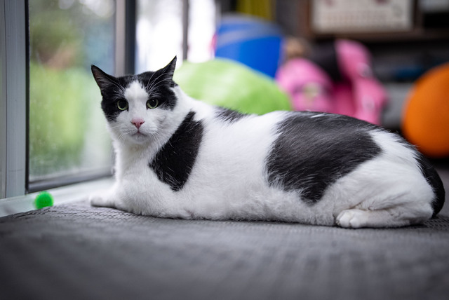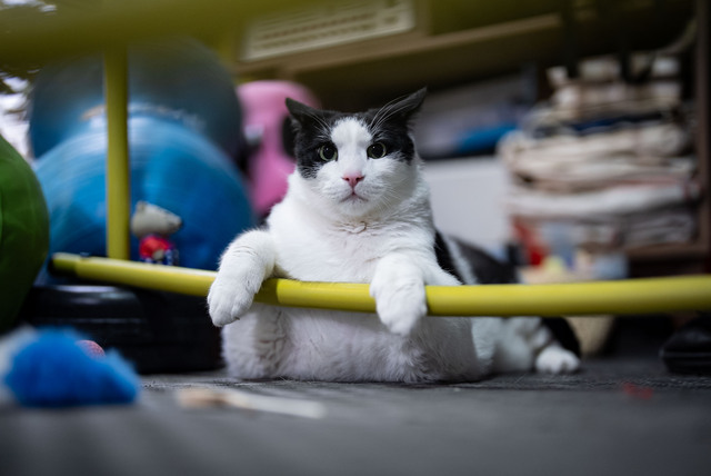 Fazla kiloya bağlı hareket kısıtlılığı yaşadığı belirlenen kedinin, diyet programı oluşturuldu, kilo vermesine ve hareket kabiliyetini artırmaya yönelik egzersiz süreci başlatıldı.