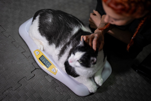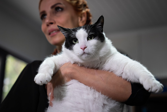 Obeziteyle mücadele eden ve yaklaşık 12 kiloya ulaşan kedi Boncuk, veteriner hekimlerin kontrolünde uygulanan diyet ve egzersiz programıyla 7 kilo vermeyi hedefliyor