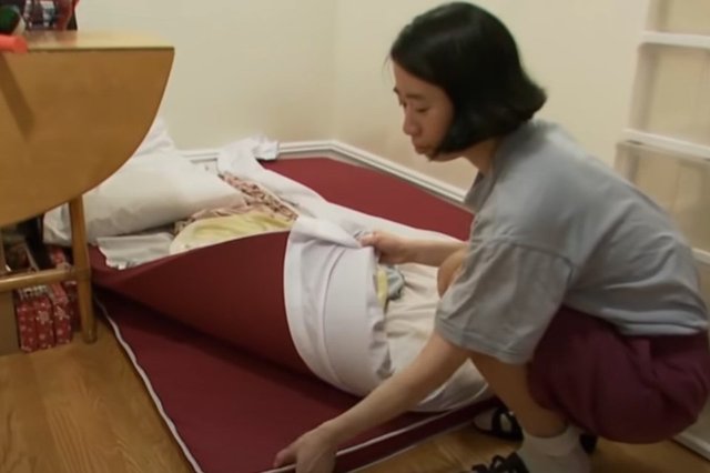 Hashimoto, "gerçek bir yatak için yüzlerce dolar" ödemek yerine, sokaktan aldığı bir yığın eski yoga matının üzerinde uyuyor ve "yemek masası" bir yığın eski dergiden oluşuyor.