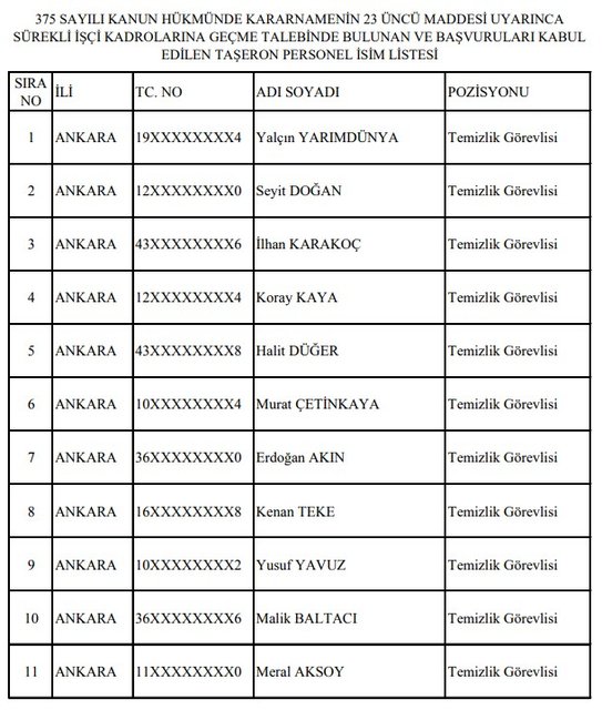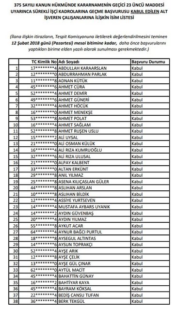 İşte isim isim taşeron başvuru sonuçları ve ilk listeler: