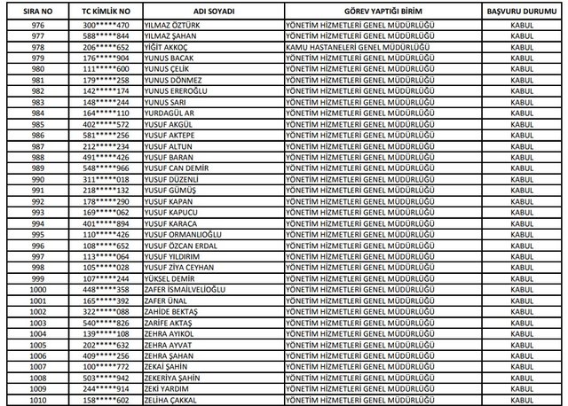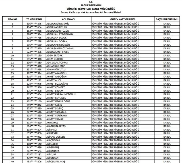 TÜRKİYE CUMHURİYETİ SAĞLIK BAKANLIĞI TAŞERON BAŞVURU SONUÇLARI LİSTESİ...