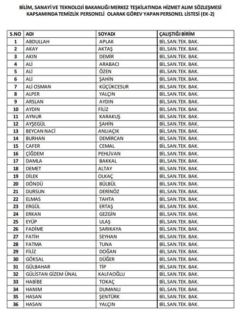 TÜRKİYE CUMHURİYETİ BİLİM, SANAYİ VE TEKNOLOJİ BAKANLIĞI TAŞERON BAŞVURU SONUÇLARI LİSTESİ...