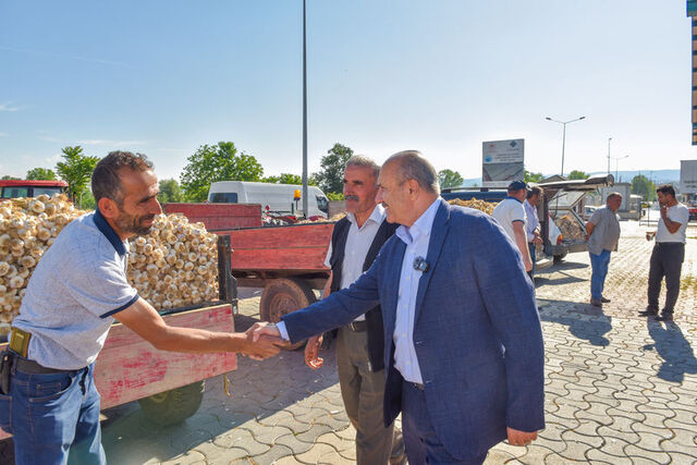 İlçede "beyaz altın" olarak adlandırılan sarımsak hasadının başlamasının ardından sezonun ilk sarımsak pazarı kuruldu.