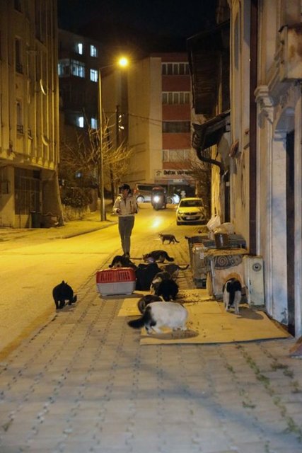 Yanındaki mamalar bitene kadar yaklaşık 2-3 saat boyunca sokak sokak dolaştığını aktaran Öztürk, "Gidebildiğim yere kadar sokak sokak gidiyorum. Baktığım 100'e yakın kedi var. Ne kadar dağıtabilirsem dağıtıyorum. Onun dışında her zaman yanımda mama da olur. Gittiğim her yerde veririm. Son nefesime kadar, elimden geldiğince sokak hayvanlarını beslemeye devam etmek istiyorum" ifadelerini kullandı.