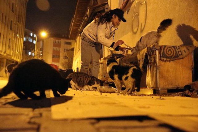 Yaklaşık 5 yıldır kendi imkanlarıyla aldığı mamalarla sahipsiz hayvanları beslediğini dile getiren Öztürk, "Her gün onlara gidiyorum. Onlar açken ben doyamıyorum. Önce onları doyuruyorum, sonra kendi karnımı doyuruyorum. Sabah ve akşam günde iki tur yapıyorum" diye konuştu.