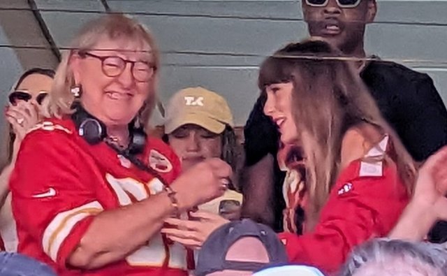 Kansas City Chiefs takımının renklerinde, kırmızı ve beyaz giyinen Taylor Swift, Travis Kelce'nin annesi Donna Kelce ile yan yana oturdu. Swift, maç boyunca heyecanlı ve neşeli tavırlarıyla objektiflere yansıdı.