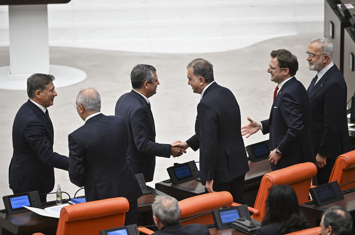 AK Parti Grup Başkanı Abdullah Güler, CHP ve DEM Partililerle selamlaştı. CHP Genel Başkanı Özgür Özel başta CHP milletvekilleri olmak üzere AK Partililer ile selamlaştı.
