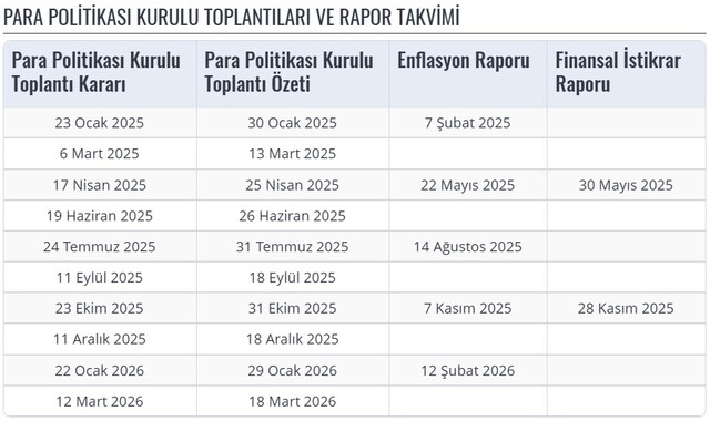 TCMB 2025 TOPLANTI TARİHLERİ AÇIKLANDI!