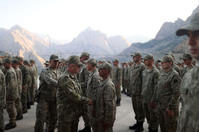 Daha sonra Hakkari'ye geçen Bakan Akar'ı Selahaddin Eyyübi Havalimanı'nda Vali İdris Akbıyık, 2. Ordu Komutanı Orgeneral Metin Gürak ve diğer yetkililer karşıladı. Akar ve komutanlar, buradan Yüksekova'ya bağlı Dağlıca'daki 1450 rakımlı 4. Hudut Tabur Komutanlığına geçti.