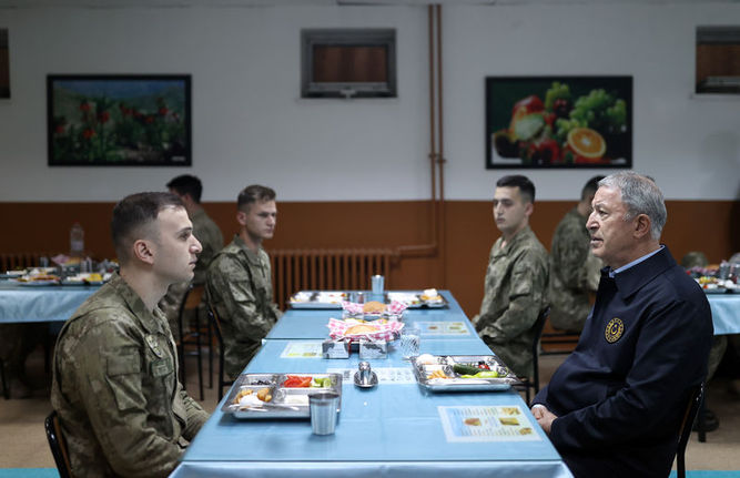 Konuşmasının ardından personelle bayramlaşan Akar ve komutanlar, daha sonra yemekhaneye geçerek Mehmetçik ile kahvaltı yaptı.