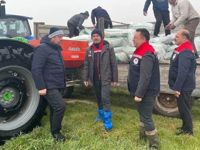 Tekirdağ'ın Hayrabolu ilçesindeki mera alanında gübreleme çalışması gerçekleştirildi. Çalışmaya Tekirdağ İl Tarım ve Orman Müdürü Mehmet Aksoy ve İlçe Tarım ve Orman Müdürü Gürcan Evin de katıldı