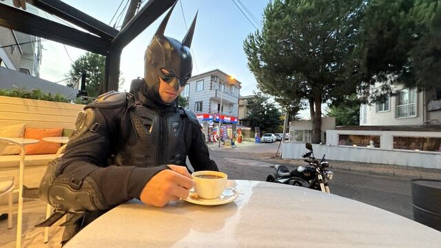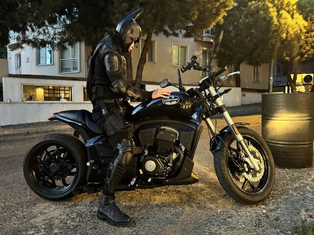 Tekirdağ'da yaşayan 29 yaşındaki Ersin Çiçek, film karakteri 'Batman'den ilham alarak giydiği kostümü ve modifiye motosikletiyle görenlerin dikkatini çekiyor