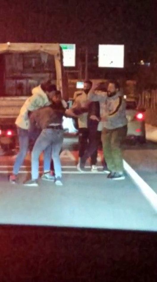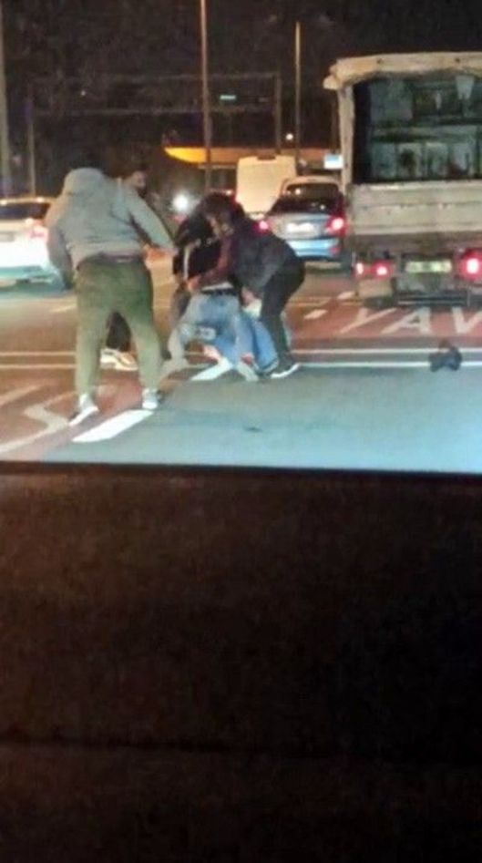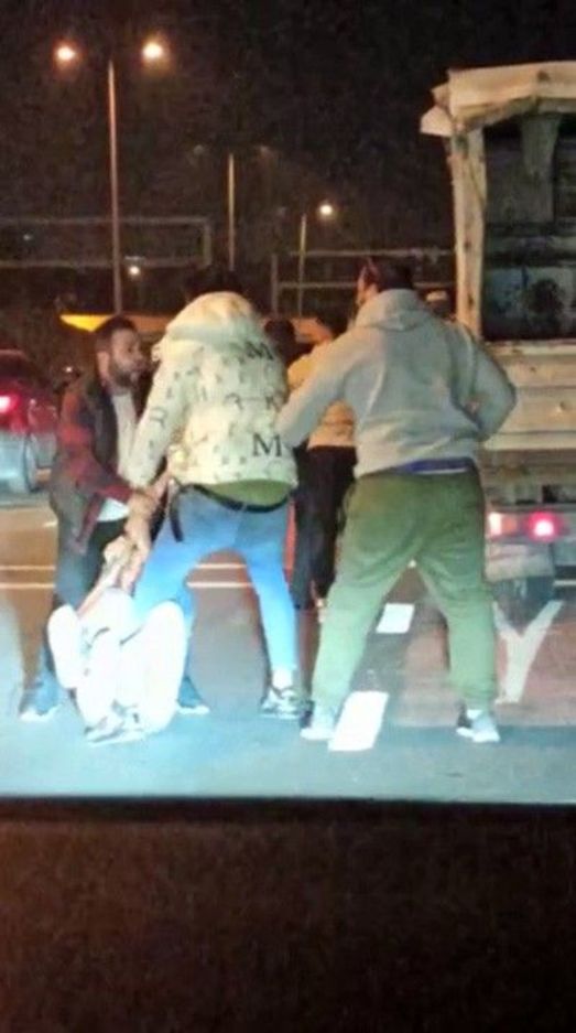 Kamyonet şoförü de levye ile araçtan inip sürücülerin üzerine yürümeye başladı. Diğer sürücüler de kamyonet şoförünün elinden levyeyi alıp trafik ortasında meydan dayağı attı. Yaşanan o anlarda cep telefonu kamerası ile görüntülendi.