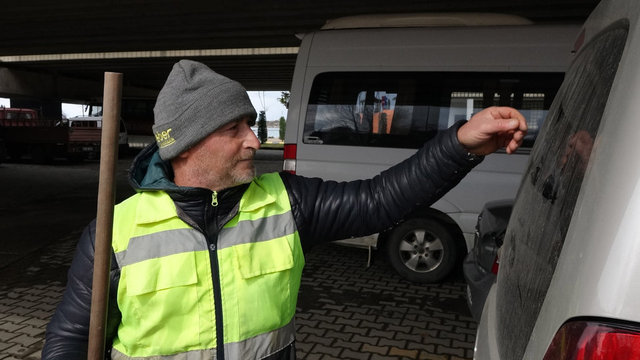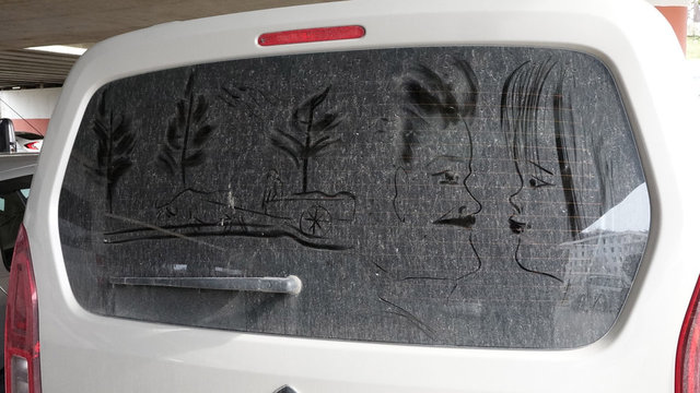 Temizlik görevlisi, tozlu araç camlarını tabloya dönüştürüyor