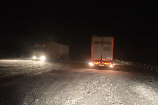 Sıfırın altında 5 dereceyi bulan soğuk havanın da etkili olduğu bölgede bu durum, çoğunluğu ağır tonajlı birçok aracın yolda mahsur kalmasına neden oldu.