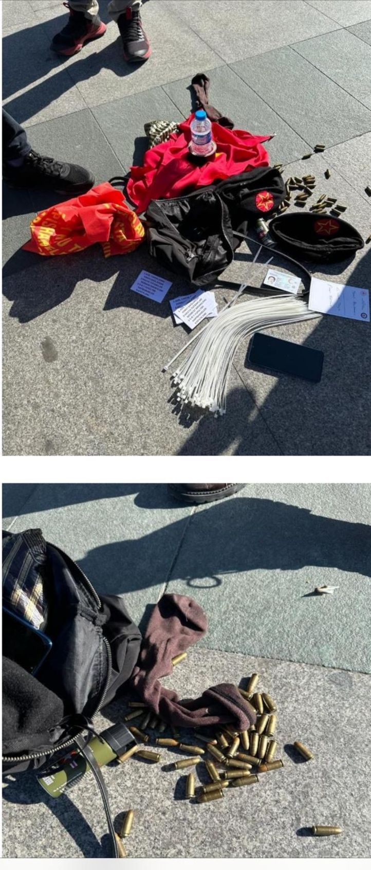 İstanbul Adalet Sarayı önündeki polis kontrol noktasına yönelik silahlı saldırıda öldürülen terör örgütü DHKP/C üyesi 2 teröristin çantasından çıkan malzemelerin görüntüsü ortaya çıktı