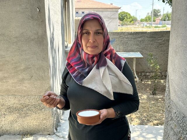 Aksaray'ın coğrafi işaret tescilli lezzeti Eşmekaya yoğurdunu günde 13 saat mesai yaparak üreten Ayşe Balkan, aile ekonomisine katkı sağlıyor
