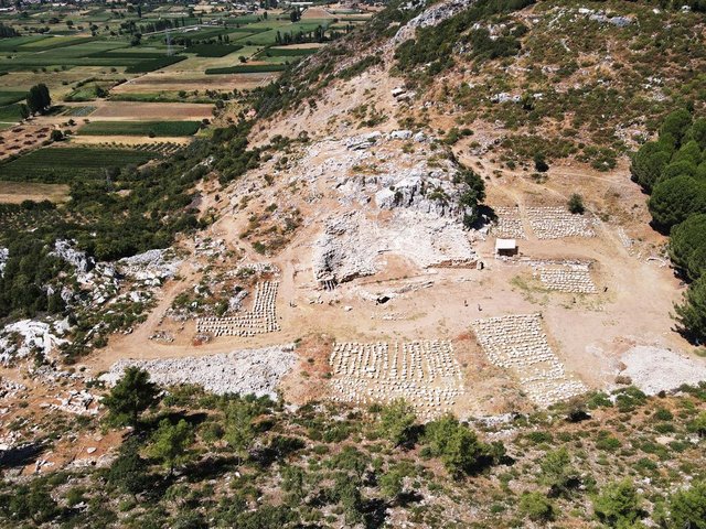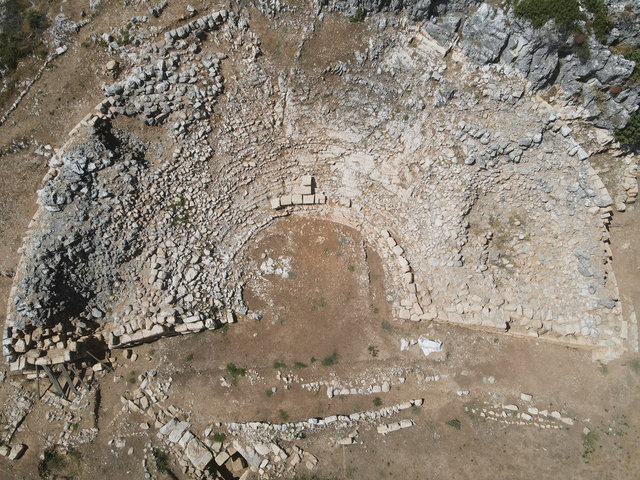 Muğla'da Karyalıların önemli yerleşim yerlerinden biri olan Thera Antik Kenti'nde yapılan kazı çalışmalarında gün yüzüne çıkarılan 2 bin kişilik antik tiyatro, yapılacak çalışmalarla kültür turizminin hizmetine sunulacak