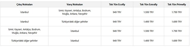 THY, 1-26 Mart 2025 arasındaki yurt içi ve tek yönlü uçuşlar için biletleri 949 TL'den başlayan fiyatlarla satışa çıkardı.