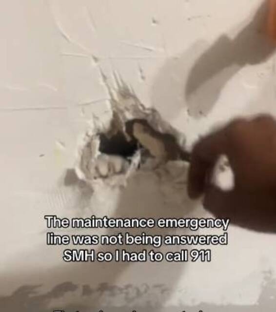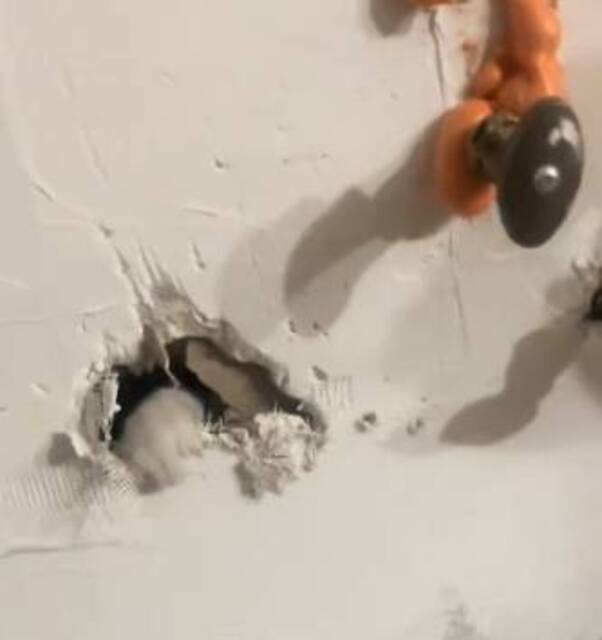 "Kendimi çok kötü hissediyorum, muhtemelen çok korkmuştu" diye yazan Jay, daha sonra yardım için acil durum hattını aradı. Operatörün kendisine 'duvarda bir delik açmasını' tavsiye etmesi üzerine Jay, duvarı parçalamaya koyuldu.
