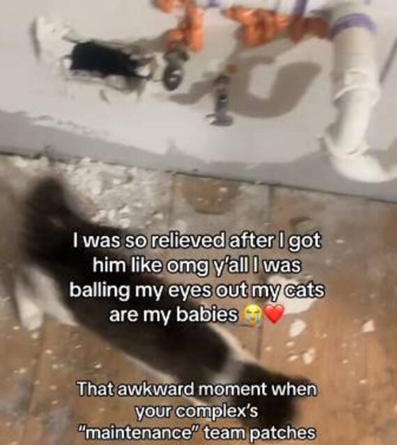 TikTok kullanıcısı, "Çalışanların kedimi lanet olası duvara hapsettiğine gerçekten inanamıyorum" başlığıyla videoyu paylaştı.