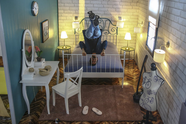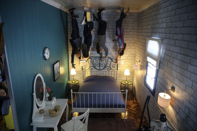 Sultanbeyli'de bir alışveriş merkezinin otoparkında ziyarete açılan "tepetaklak ev", görenlerin başını döndürüyor. TIR dorsesinden inşa edilen ve gerçek eşyaların kullanıldığı ev için 500 bin lira harcandı