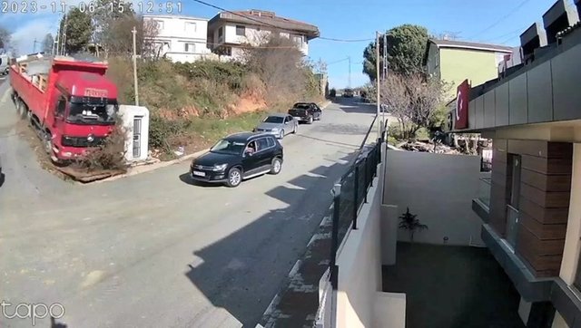 6 Kasım Pazartesi günü saat 15.00 sıralarında Maden Mahallesi'nde meydana gelen kazanın görüntüleri ortaya çıktı. İnşaat malzemesi yüklü TIR'ın şoförü cadde üzerinde aracı park ederek adres sormak için indi.