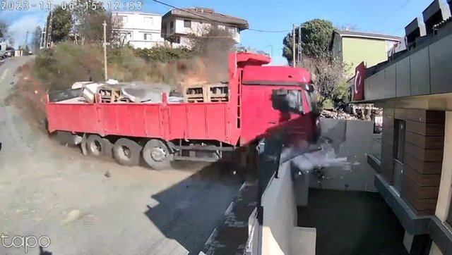 Kazayı gören Sezer Şit, "Ses gelince biz de neye uğradığımızı şaşırdık. Deprem sandık açıkçası ilk olarak. Sonra dışarı çıktığımızda gördük ki, kamyon aşırı yükten freni patlamış direk duvar durdurmuş. Allah'tan eve girmemiş, daha kötü şeyler olabilirdi eve girse" dedi.