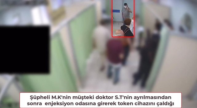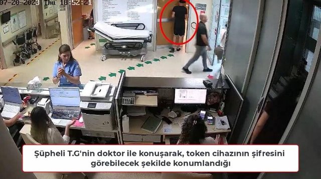 Suç örgütü üyeleri hastanenin güvenlik kameralarına yansıdı. Görüntülerde hastane kamerasında, şüphelilerden M.K.'nin doktorun bulunduğu odayı gözetlediği, doktorun oradan ayrılmasından hemen sonra enjeksiyon odasına girip token cihazını çalması da yer aldı. Yine hastanenin güvenlik kamerası tarafından çekilen bir başka görüntüde ise T.G. isimli şüphelinin doktorun odasını girip tokenin yerini tespit ettikten sonra doktorun poliklinikte olmadığı anda odaya girip aldığı da saniye saniye kaydedildi.