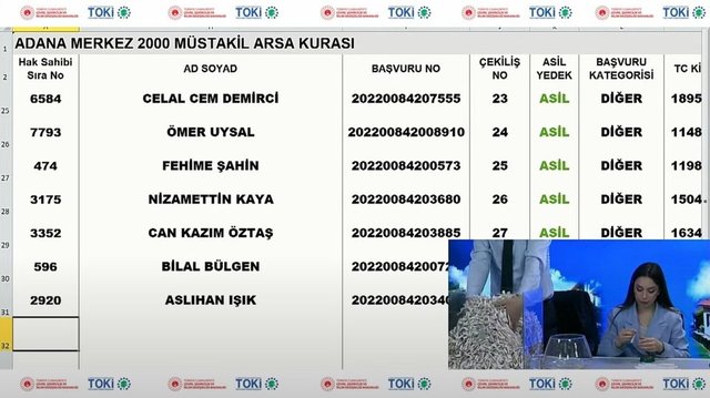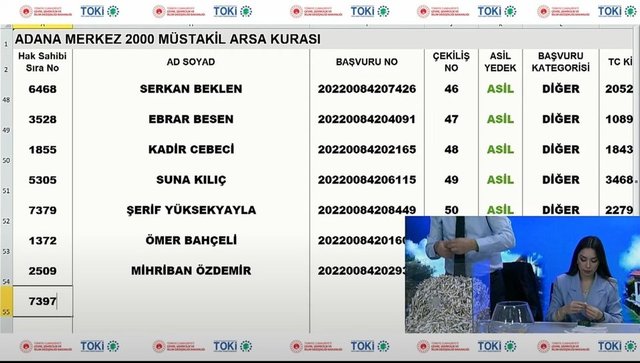 TOKİ Adana arsa kura sonuçları isim listesi sorgulama