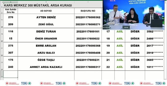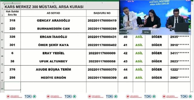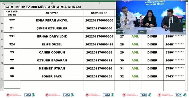TOKİ Kars arsa çekimi sonuçlarında kazanan bazı isimler...