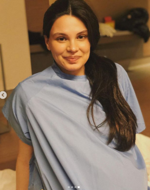 Bir hafta önce anne olan Almeda Abazi, oğlunu kucağına almadan önce çekilen fotoğraflarını sosyal medya hesabından paylaştı
