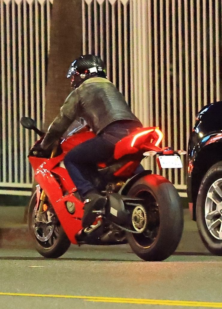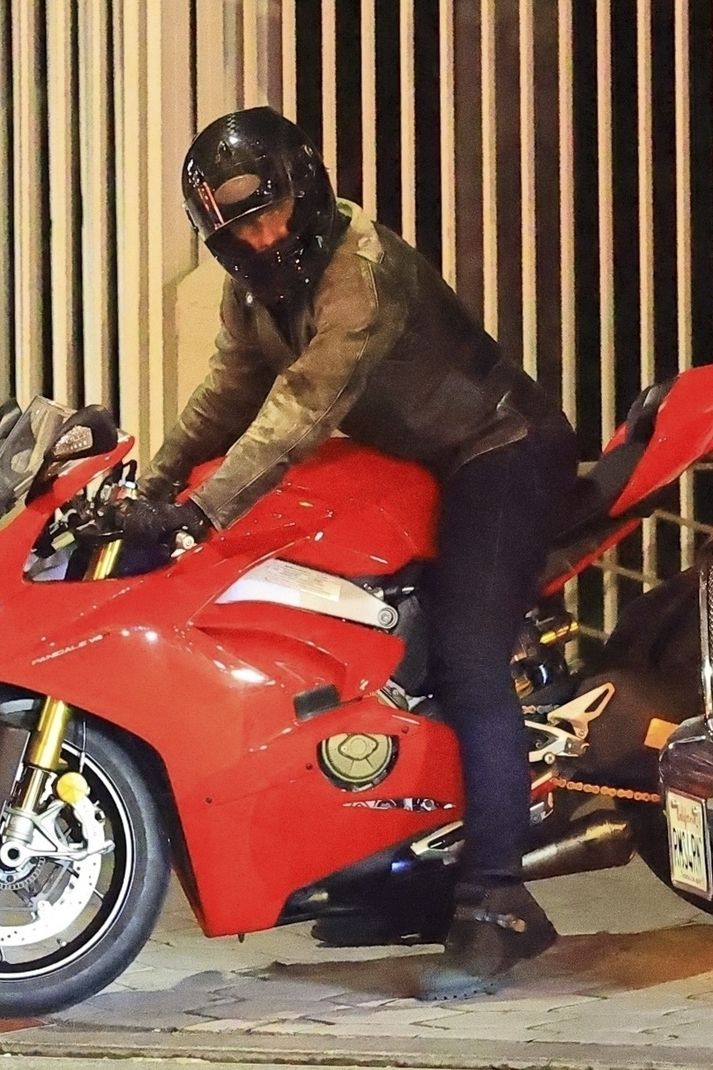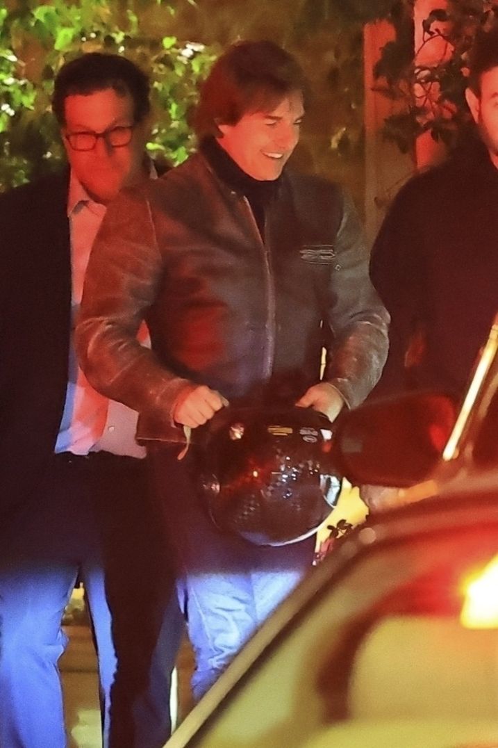 Aksiyon filmlerinde motosikletle hızlı ve heyecanlı sahnelere imza atan Tom Cruise, akşam yemeği sonrasında motosikletiyle görüntülendi