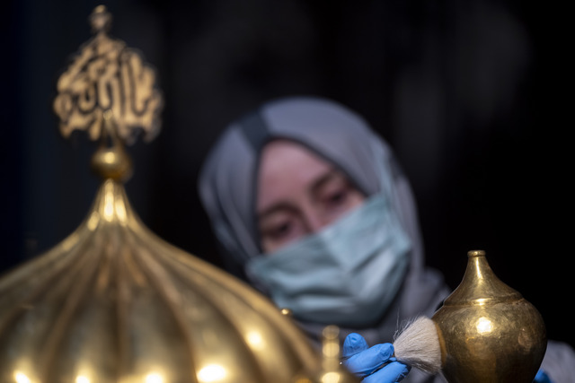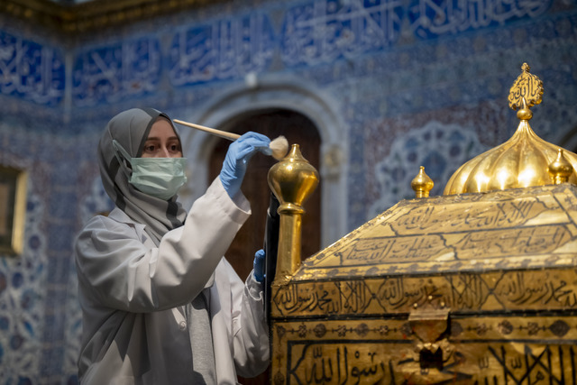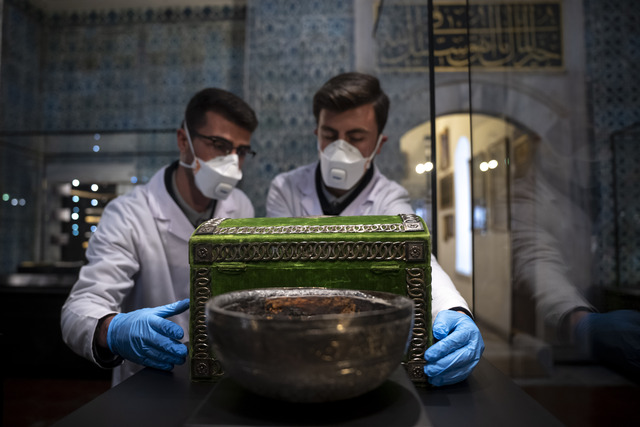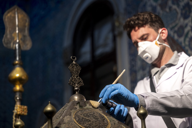Ramazan ayının yaklaşması sebebiyle Topkapı Sarayı içerisindeki Mukaddes Emanetler Dairesi'nde sergilenen eserlerde detaylı temizlik ve bakım çalışmaları yapıldı