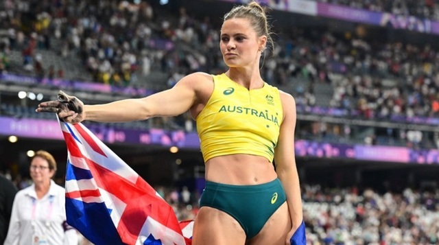 Kadınlar sırıkla atlama finalinde 4.90 ile altın madalya kazanan Avustralyalı Nina Kennedy de zaferini Yusuf Dikeç duruşuyla kutladı.