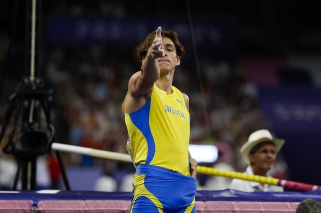 Erkekler sırıkla atlamada 6.25 metreyle dünya rekorunu kırarak üst üste ikinci kez olimpiyat şampiyonu olan İsveçli Armand Duplantis, gururunu Yusuf Dikeç duruşuyla yaşadı.