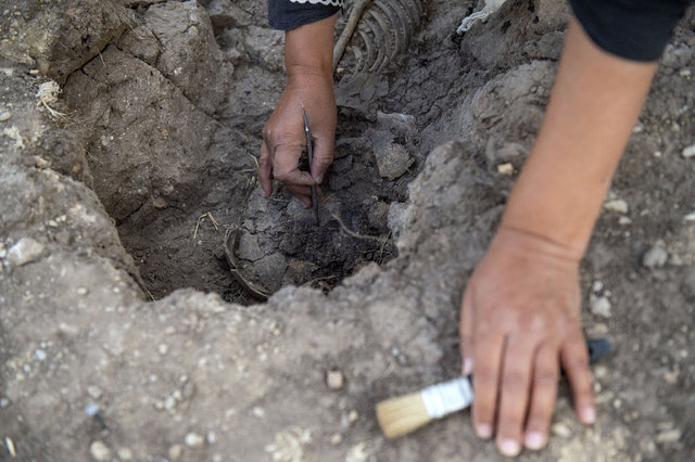 "Burada sit alanlarının sınırlarını belirlemeye çalışıyoruz. Yüzey toprağının hemen altından arkeolojik kalıntılar çıkmaya başladı. Kazının üçüncü gününde bir insan iskeleti açığa çıktı. Çocuk yaşlarda bir bireye ait. Toprağa açılan oval biçimli bir çukura büzülmüş biçimde yatırılmış bir birey, kuzey ve güney doğrultuda uzatılmış. Bu iskelet eski topluma ait ve o döneme ilişkin doğrudan bize bilgi sağlayan kalıntı olduğu için çok önemli."