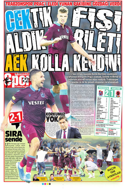 Karadeniz'de Son Nokta gazetesi ise ilk sayfasında, "Avrupai Fırtına" başlığıyla çıkarken, "Çektik fişi aldık bileti. AEK kolla kendini" şeklindeki spotlar altında haberleri okuyucularına aktardı.