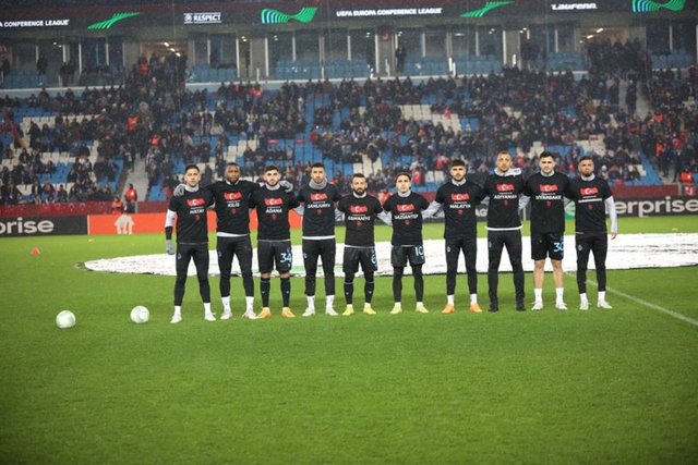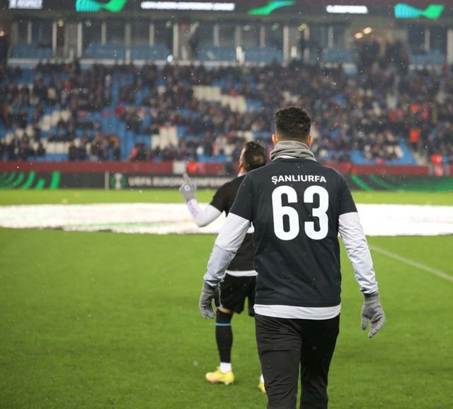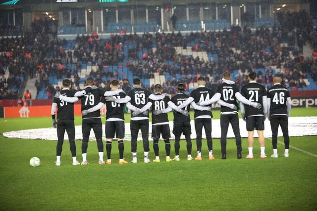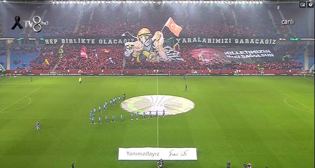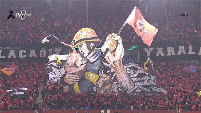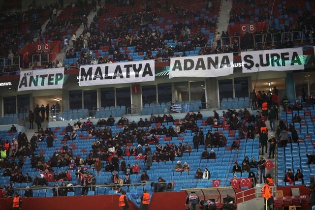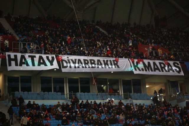 Trabzonspor taraftarları depremi temsilen özel bir koreografi hazırladı. Koreografide, bir bebek, arama kurtarma ekibi, arama kurtarma köpeği Proteo, Türkiye'ye destek veren ülkelerin bayrakları yer aldı.