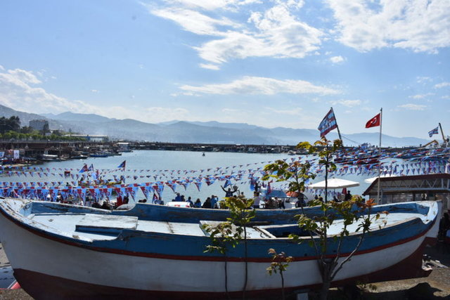 Bordo-mavililer, Mehmet Ali Yılmaz Tesisleri'nden otobüsle geldiği Yat Limanı'ndan tekneyle ayrıldı.