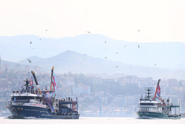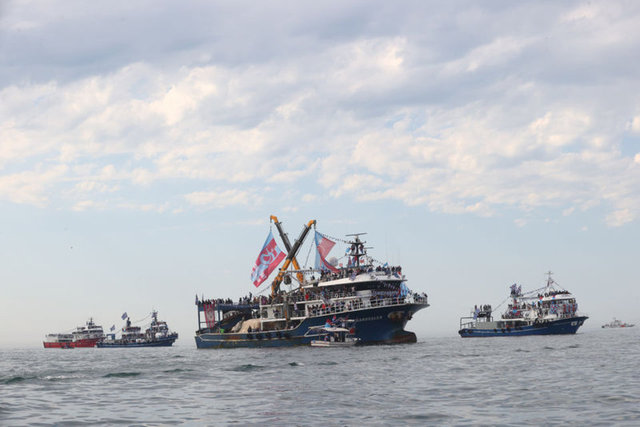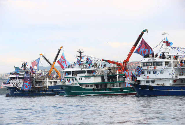 Tesislerden ayrılan şampiyonların filosuna taraftarlar da kendilerine ait çok sayıda tekneyle bordo-mavi bayraklarıyla eşlik etti. Taraftarlar, meşalelerle ve tezahüratlarla takımlarının şampiyonluğunu kutladı. Deniz kenarında da taraftarlar, yol boyu takımlarına sevgi gösterilerinde bulundu.