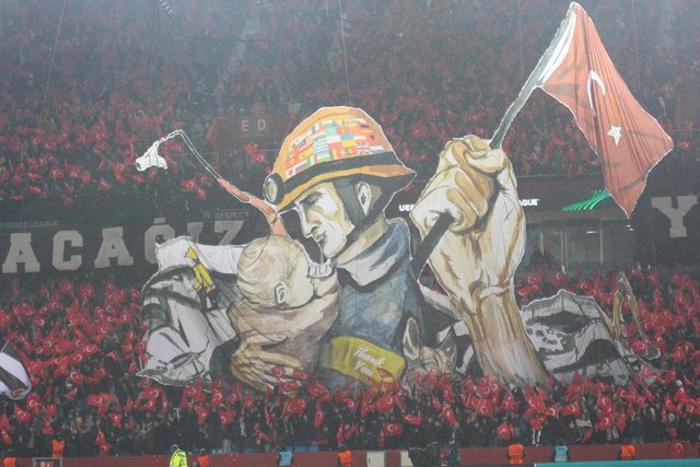 Trabzonspor'un UEFA Konferans Ligi play-off turunda İsviçre'nin Basel takımı ile oynadığı karşılaşmada futbol dünyası tek yürek olurken bordo-mavililerin koreografisi de dünya basınının gündemine oturdu