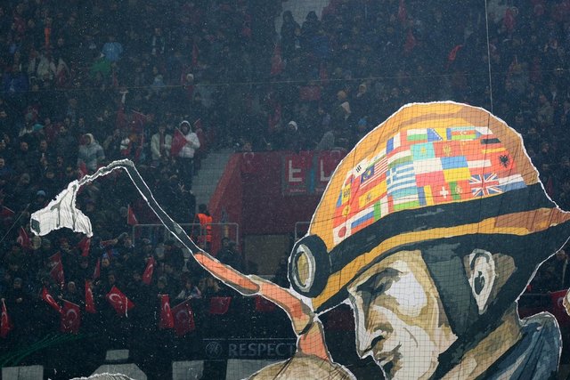 Vefasını ve minnettarlığını koreografiye yansıtan taraftarlar, Meksika´dan gelen 150 kişilik ekibin arama kurtarma köpeği Proteo´yu da resmetti. Adıyaman´da enkaz altındaki 3 kişinin kurtarılmasında önemli rol oynayan ve operasyon sırasında hayatını kaybeden Proteo´ya `teşekkür´ mesajıyla gösterilen saygı, dünya basınında yankı uyandırdı.