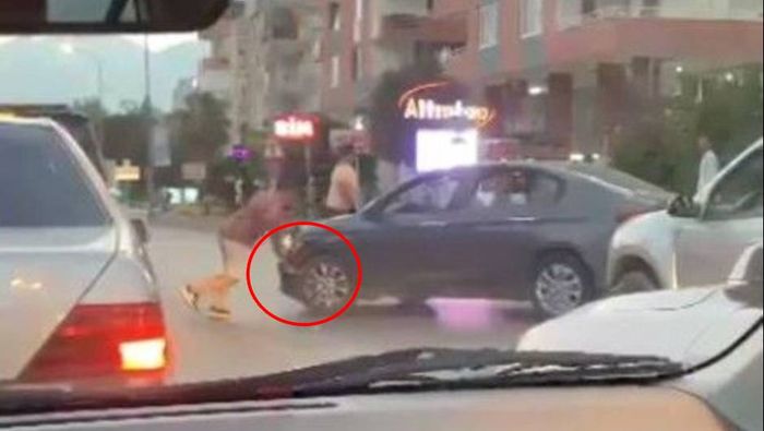 Antalya'da, trafikte tartıştığı 2 kişiyi bıçaklaya kovalayan sürücü, daha sonra otomobilin lastiklerini bıçakladı. O anlar bir vatandaşın cep telefonu kamerasına yansıdı.