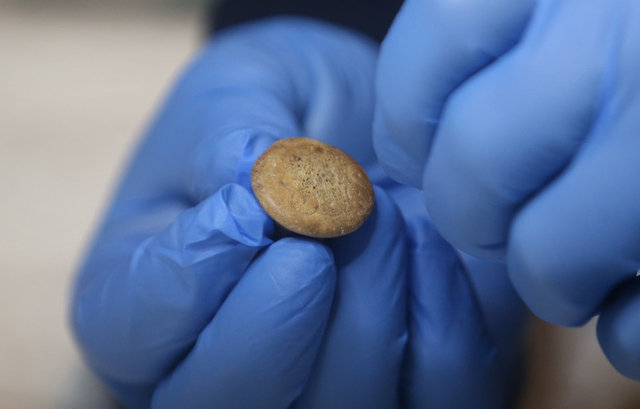 Çanakkale merkeze bağlı Tevfikiye köyü sınırlarındaki Troya antik kenti kazısında kemikten yapılmış 3 bin 300 yıllık desenli hançer sapı bulundu