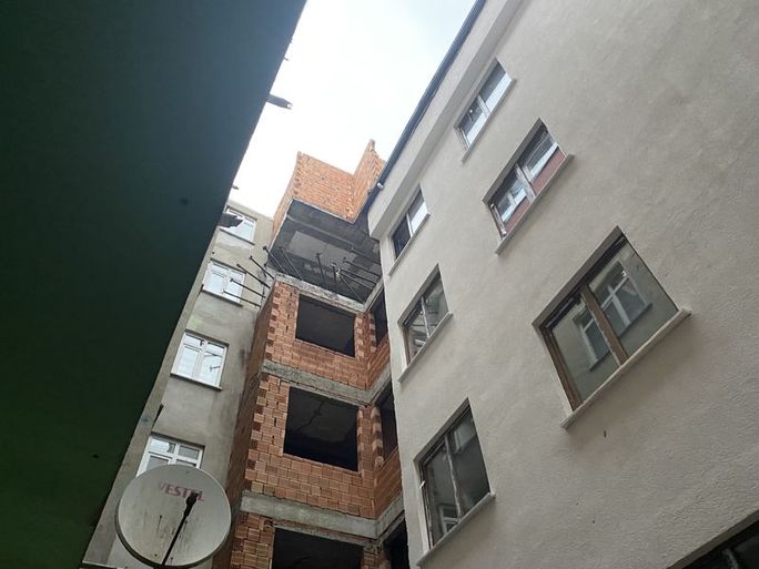 Esenyurt'ta inşaat halindeki binadan, başka bir binanın bodrum katının balkonuna tuğlalar düştü. O sırada uykuda olan aile, deprem olduğunu sanarak korku dolu anlar yaşadı.