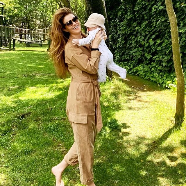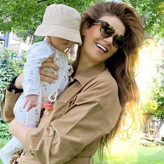 Tülin Şahin, yaklaşık yedi aylık kızı Siena Leyla ile pozlarını sosyal medya hesabından takipçileriyle paylaştı. Şahin, paylaşımına "Tontiş ile bahçe keyfi" notunu düştü