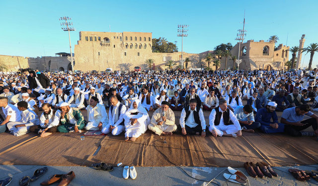 Libya'daki Müslümanlar, Ramazan Bayramı namazını başkent Trablus'taki Şehitler Meydanı'nda kıldı.