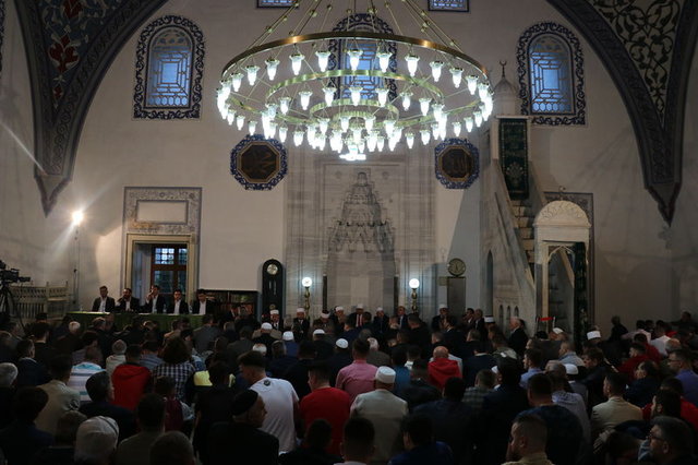 Bayram coşkusunun sabahın ilk saatlerinden itibaren hissedildiği Kuzey Makedonya’nın başkenti Üsküp’teki tarihi Mustafa Paşa Camisi, bayram namazı için gelen müminlerle dolup taştı.
